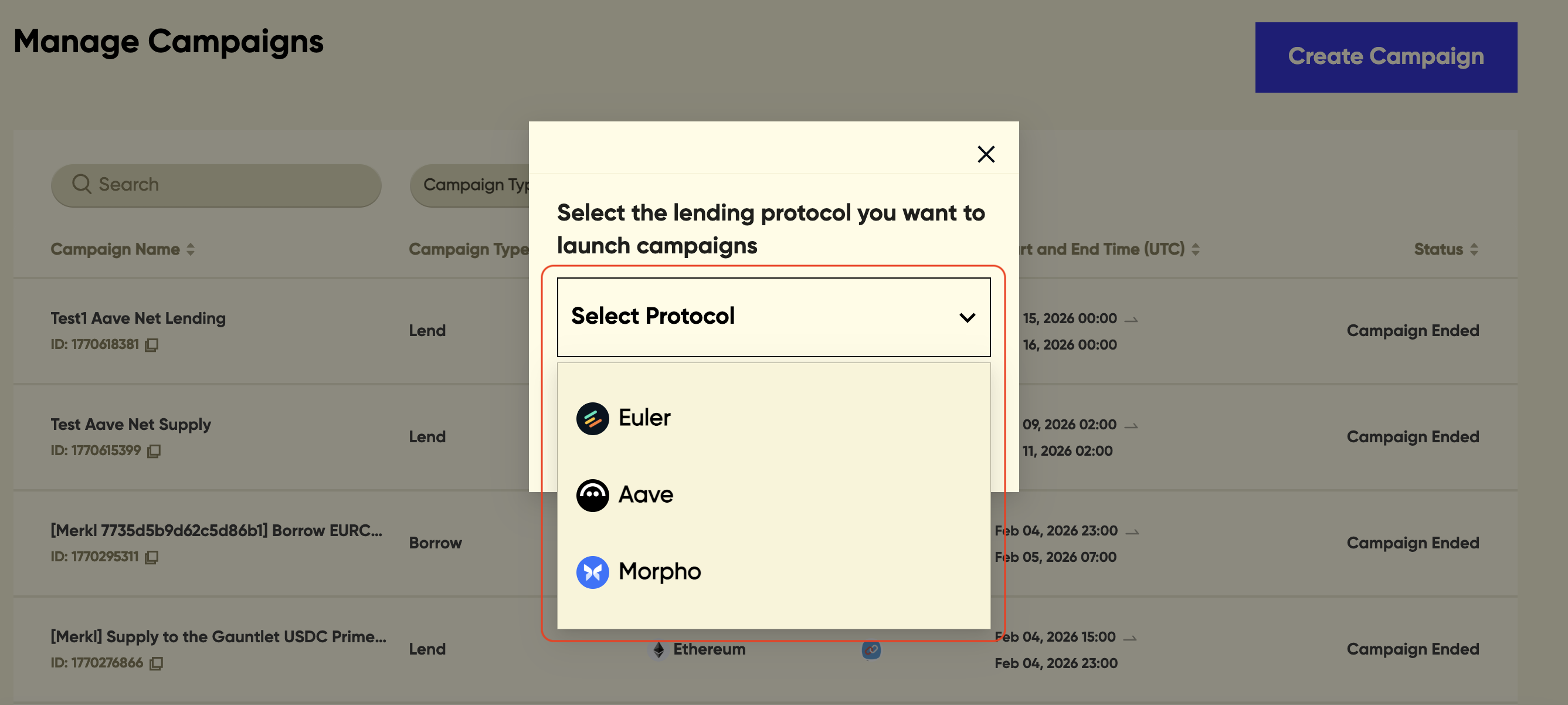 If you would like to create campaigns for new chains or new protocols, please contact us.