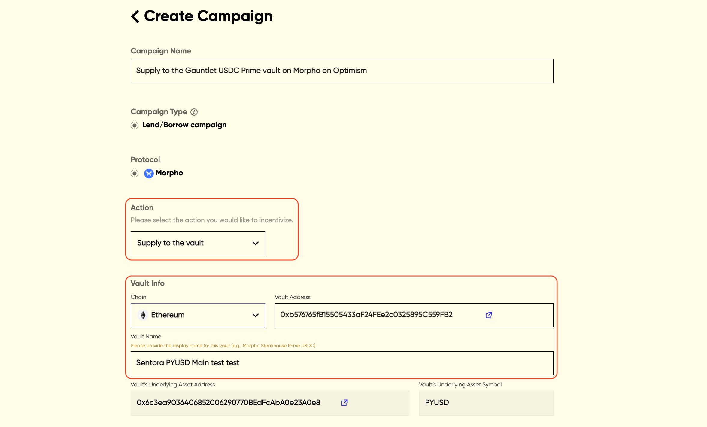 NOTE: The underlying asset token of a vault needs to be whitelisted first before the vault can be used in a campaign. Please contact us if you’d like to whitelist an asset token that isn’t currently available.